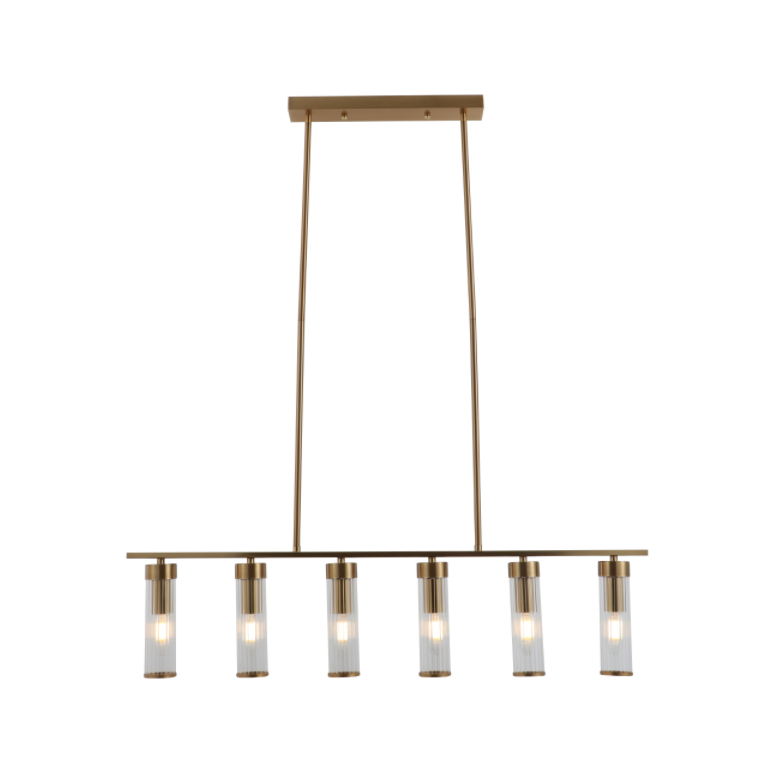 Ова класична подесива висина линеарног стакленог привеска је компатибилна са модерним, индустријским и минималистичким стиловима украса. Може се користити са традиционалним сијалицама или натјечене сијалице да би се задовољиле и стварање атмосфере и функционалне потребе осветљења трпезарија. Познатно, производ подржава модуларну комбинацију (прилагодљиво од 6 до 8 утичница сијалице), помажући купцима који покривају најразличитији захтеви купаца са најмањим залихама.